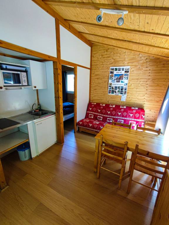 Our 2 chalets Marmotte are made by Ballario; they have been renovated and have better insulation, floor and equipments.