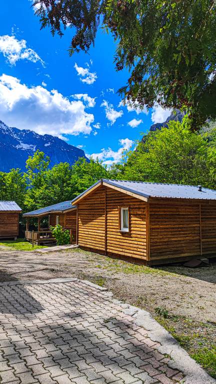 Holidays that you will never forget, a stone's throw from Les 2 Alpes and l’Alpe d'Huez mountain resorts, surrounded by nature of the Ecrins National Park, the campsite Le Champ du Moulin en Isère offers you the rental of 9 chalets, 2 furnished tents, 4 furnished flats and a gîte d'étape (5 people)..